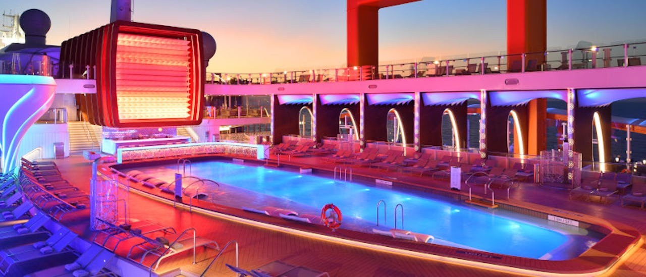 Restaurant by night, poolside area by day and a jetty when embarking and disembarking – the Magic Carpet is a moving glass veranda outside the ship.