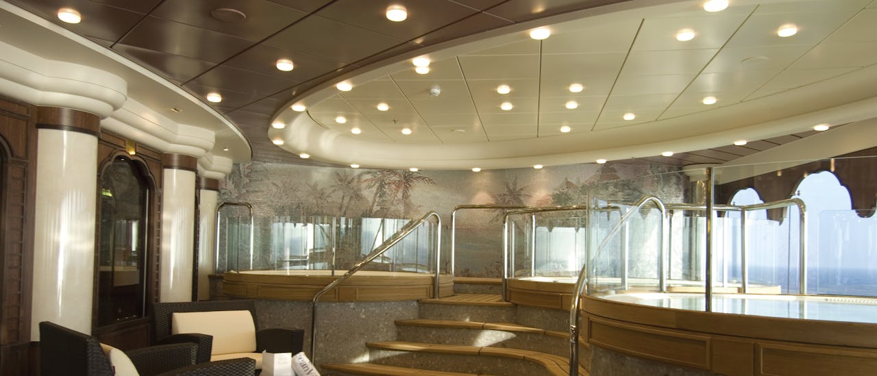 The pool deck features refreshing pools and jacuzzis by day and movie nights under the stars. Unwind at the luxurious spa with massages, facials, body treatments, and relaxing thermal areas like the sauna and steam room.
