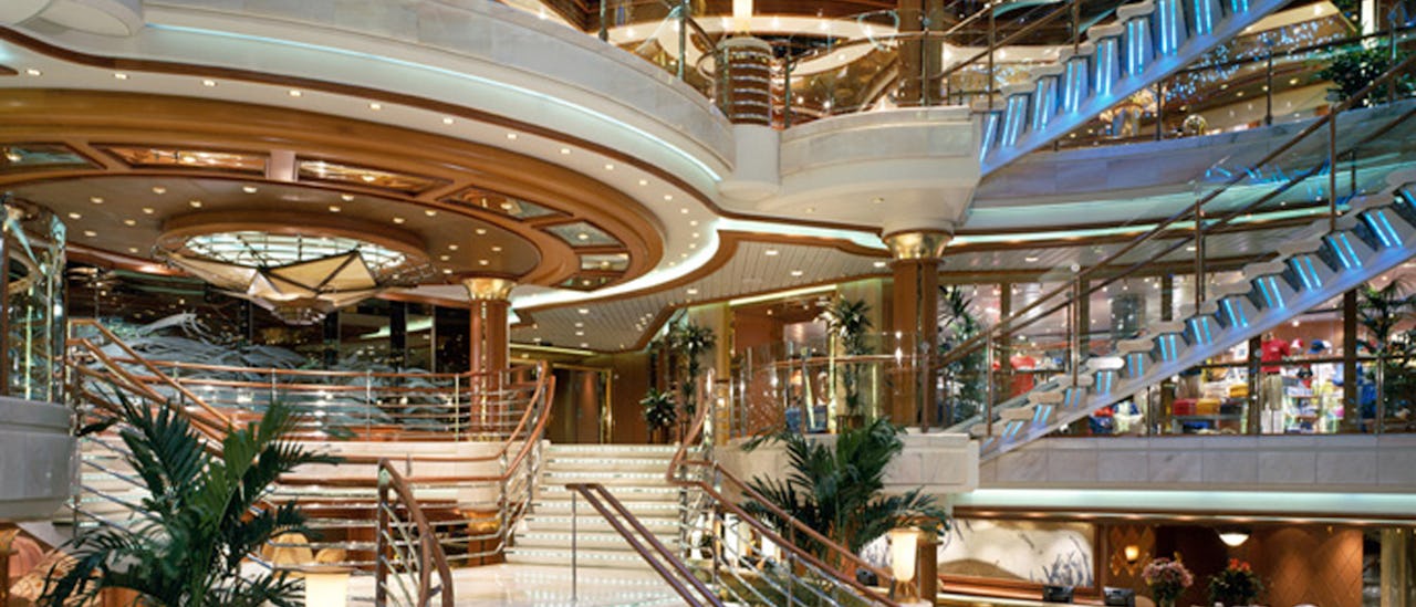 Pass by the ship’s focal point, The Piazza, a place which can be found buzzing with jugglers, musicians and acrobats.