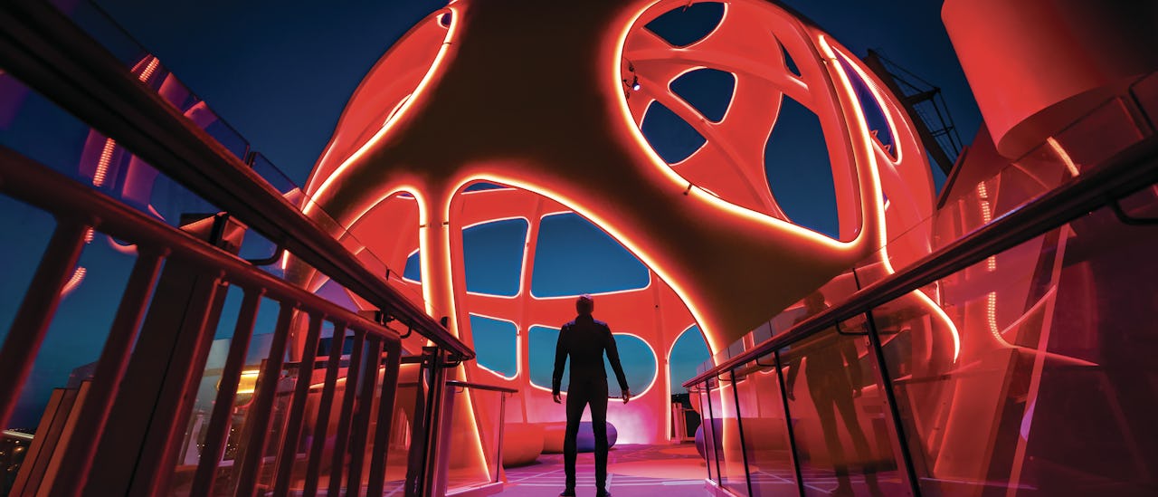 Relax in jacuzzi that hangs outside the ship, 120 feet above sea level.