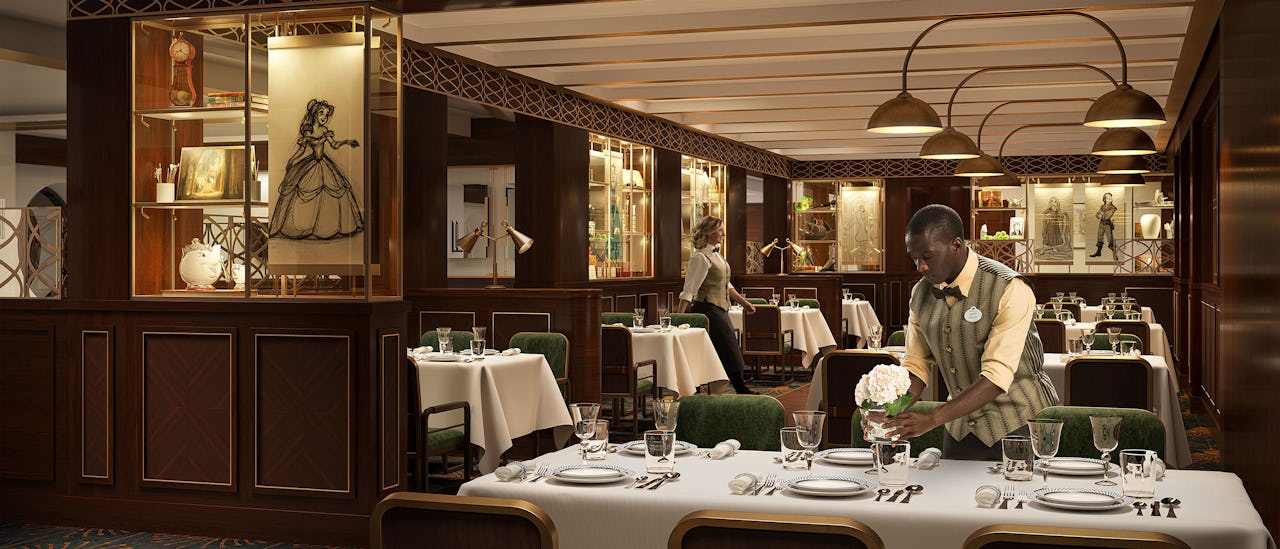 The meals are an unforgettable holiday memory aboard Disney Wish! Here are three main dining restaurants and you “rotate” between the restaurants, which means that you will dine in a different place each evening.