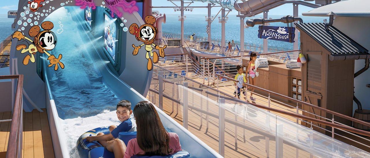 Raise your heart rate in the 765-meter-long winding water slide called "The AquaMouse", which winds 13 meters above the edge of the ship. On board there are also three pools, a 9-hole mini golf course and sport simulators for soccer, tennis, basketball and golf.